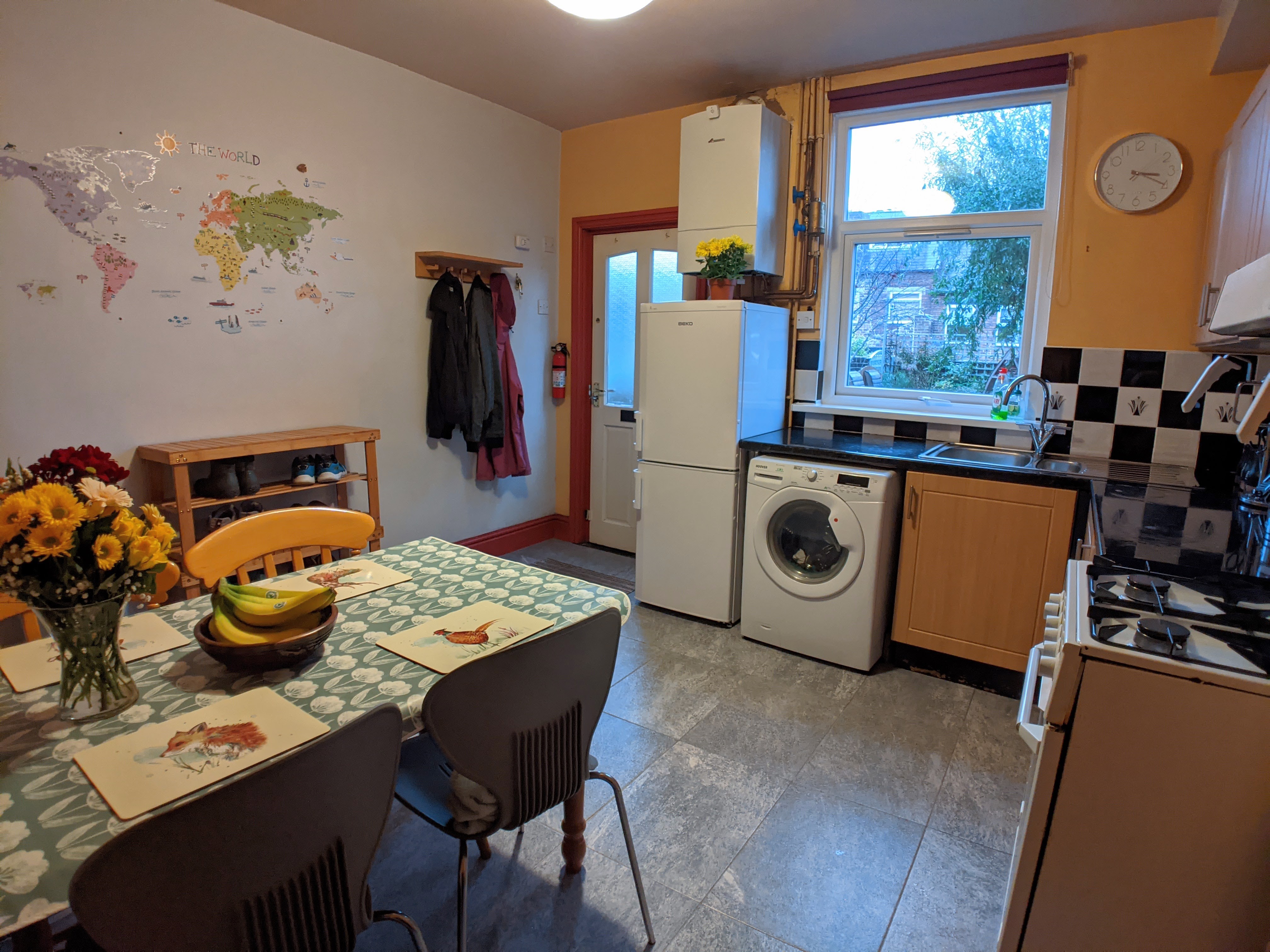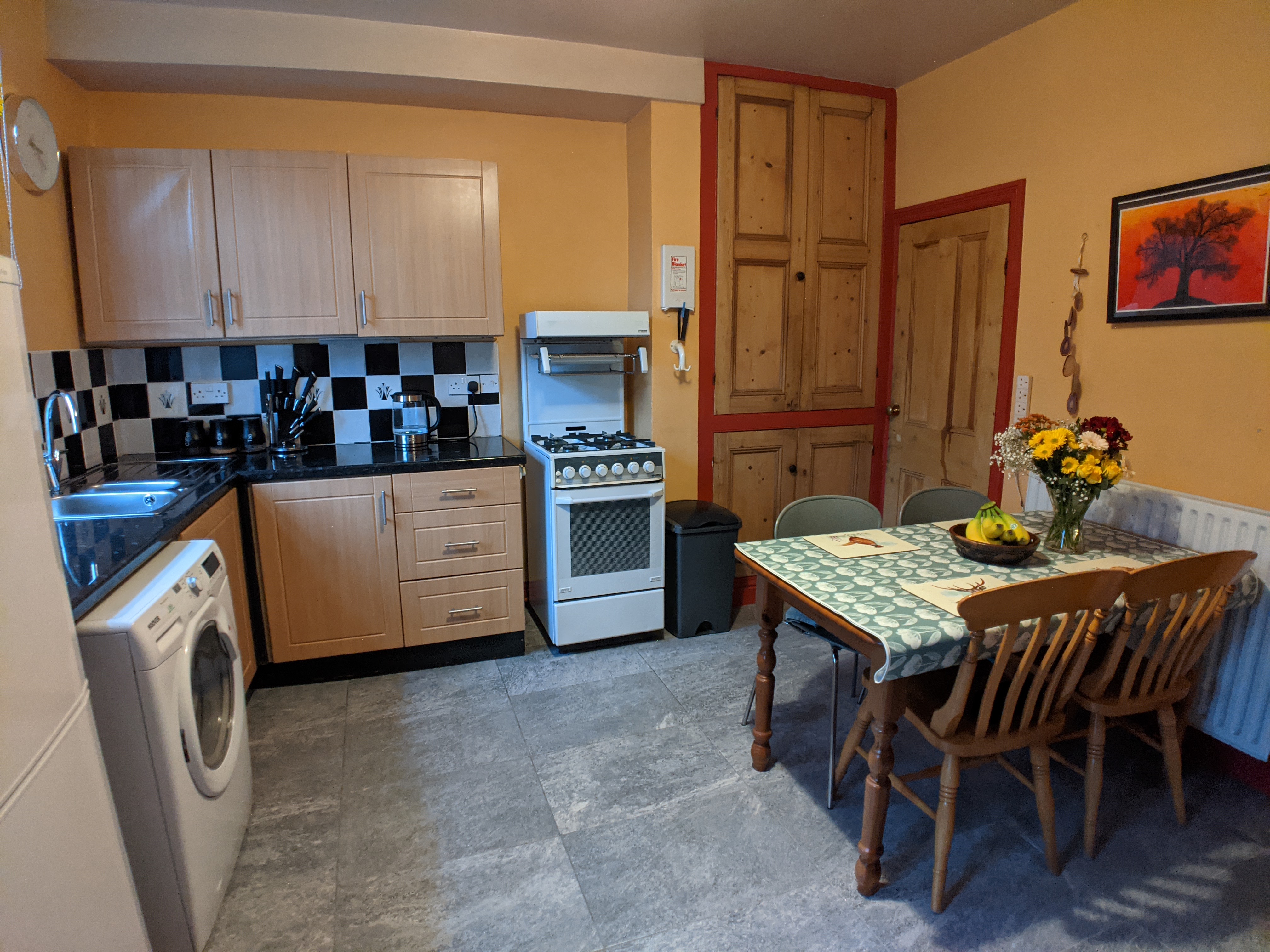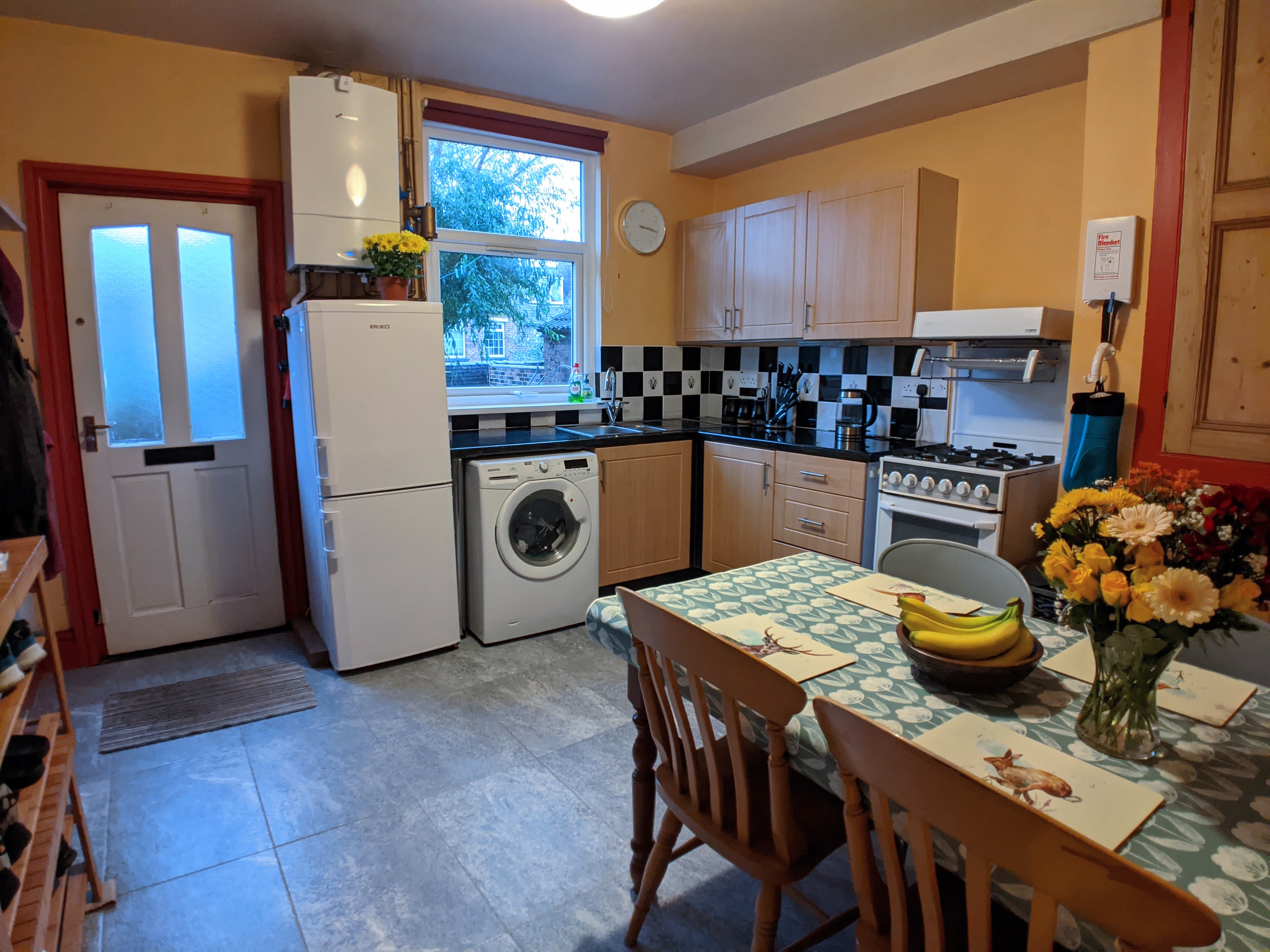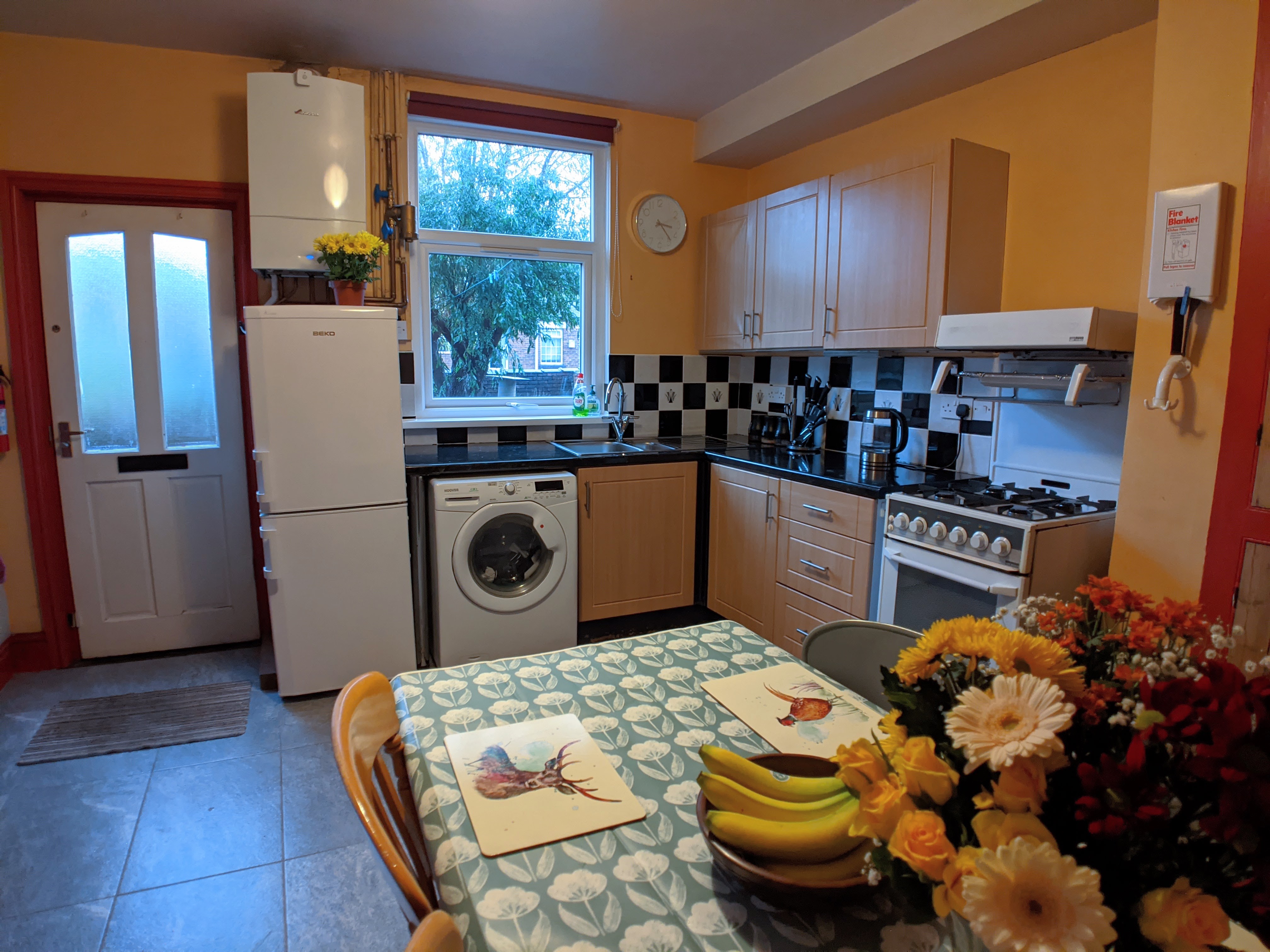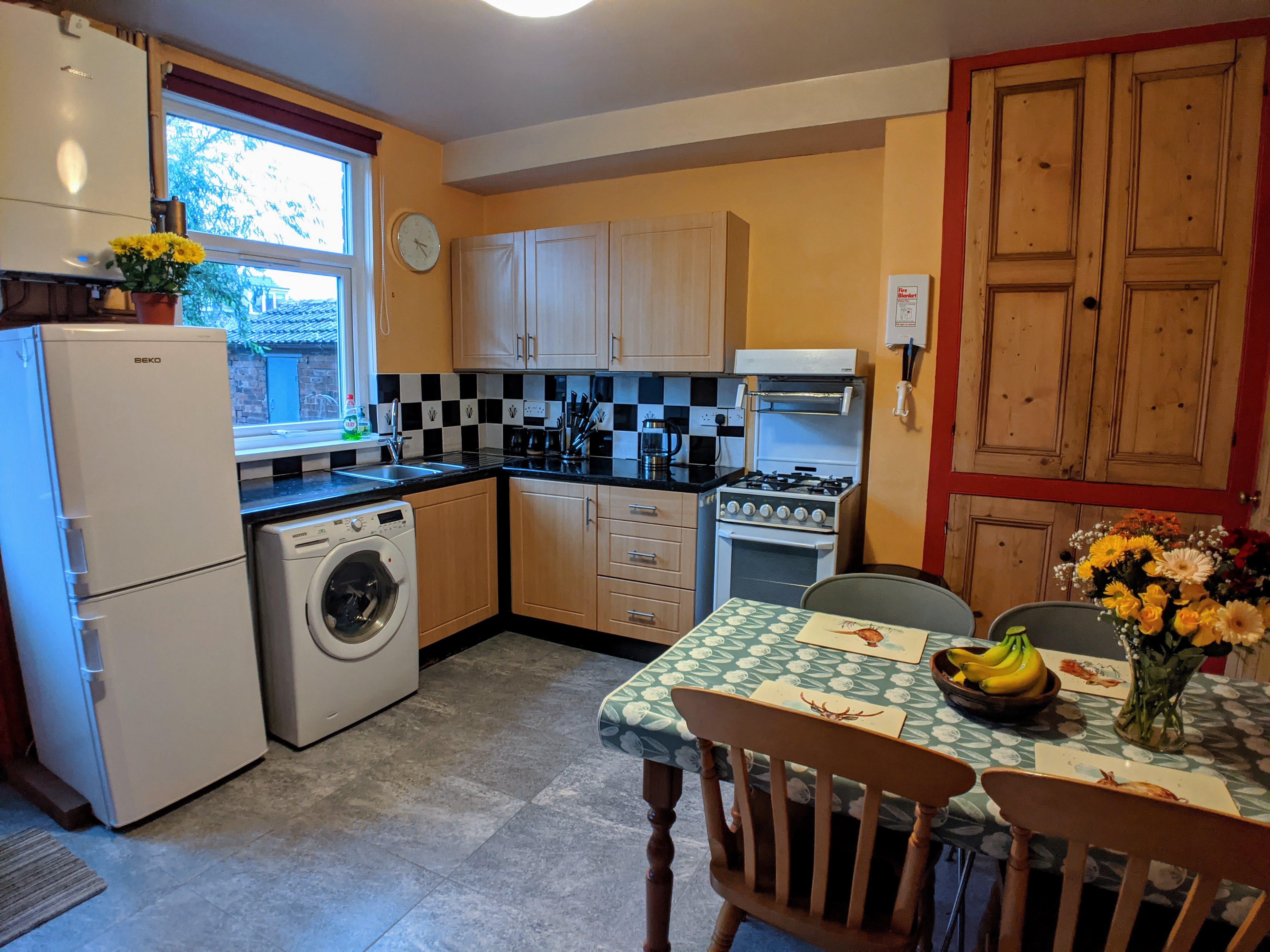 The property is protected by a mains powered heat sensor in the kitchen interlinked with mains powered smoke detectors on every floor.