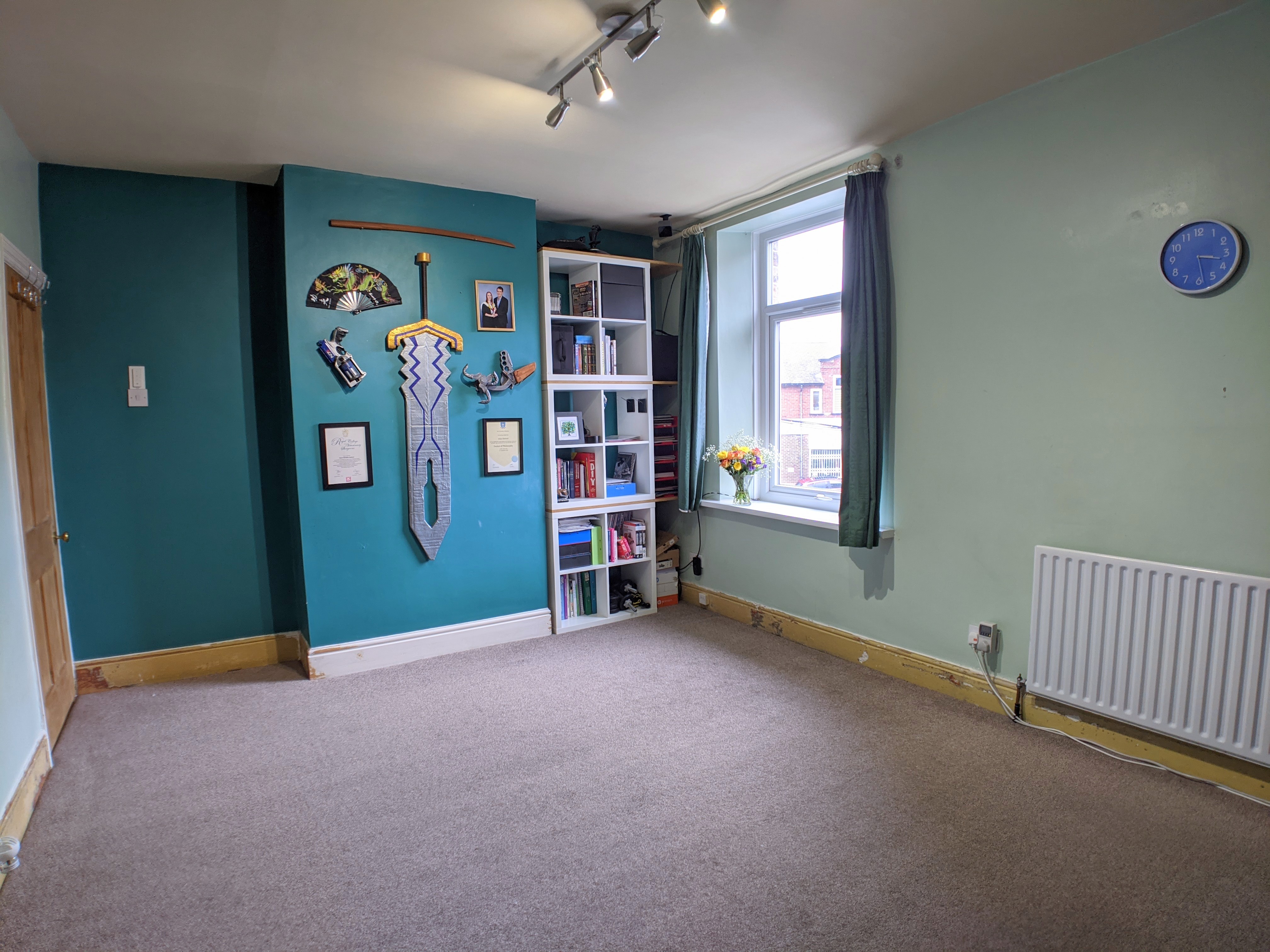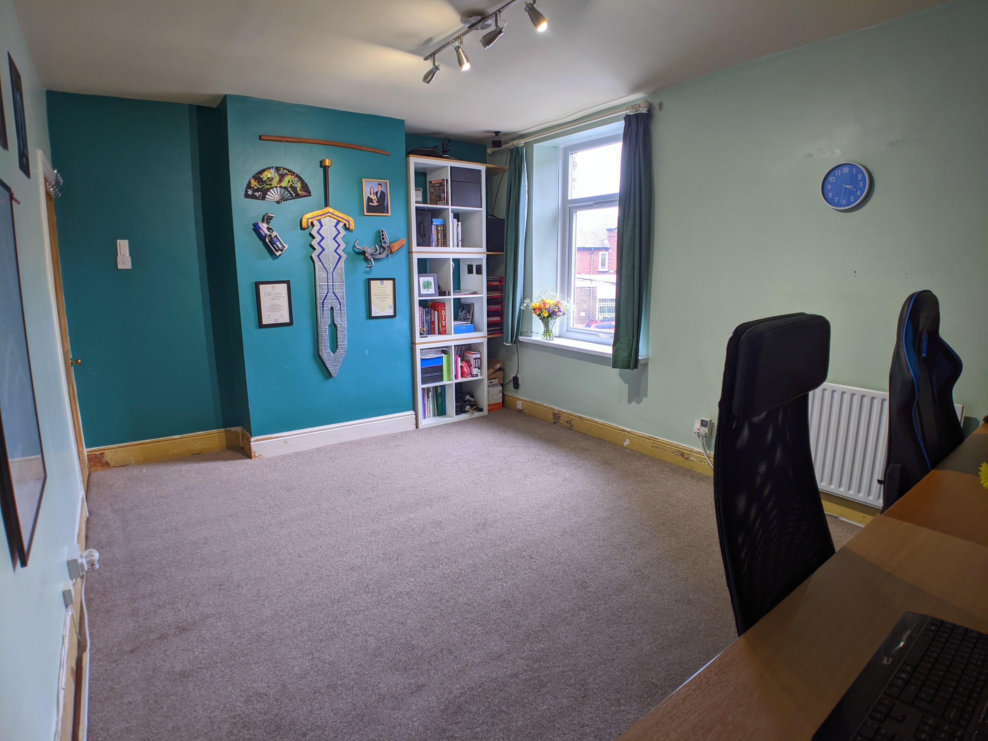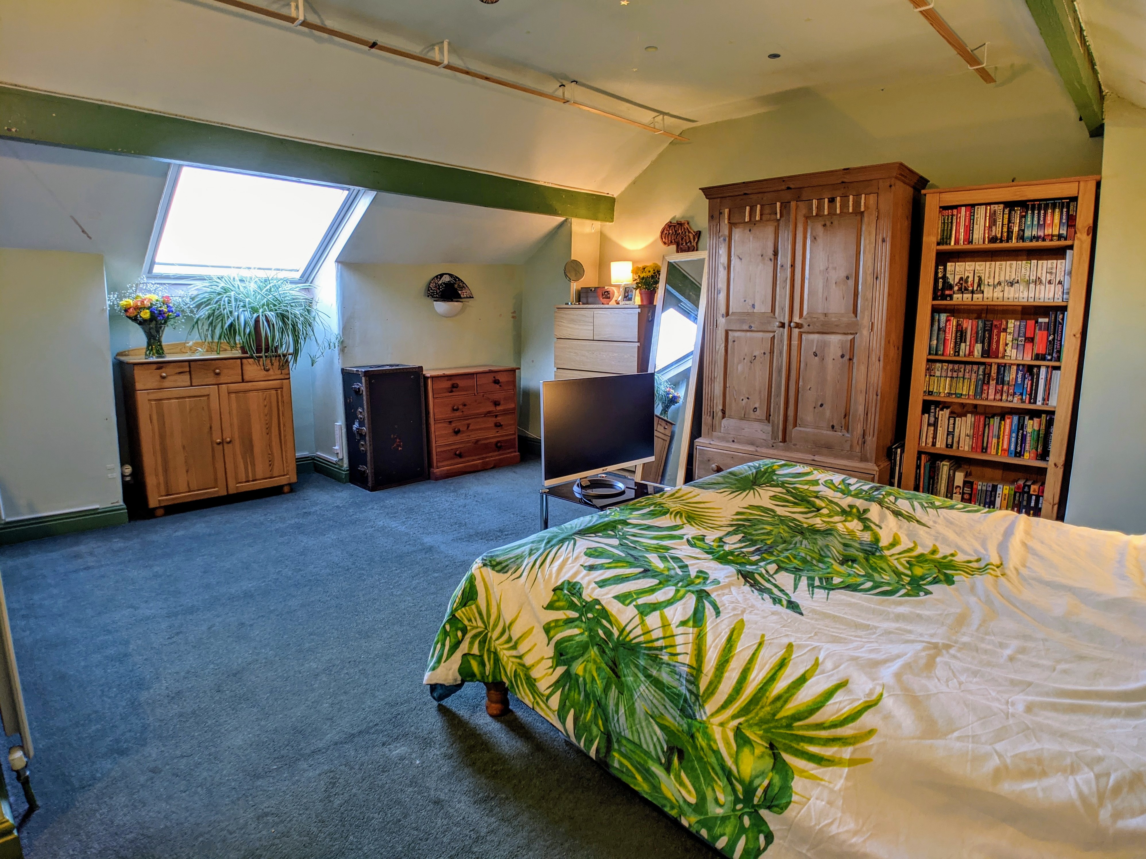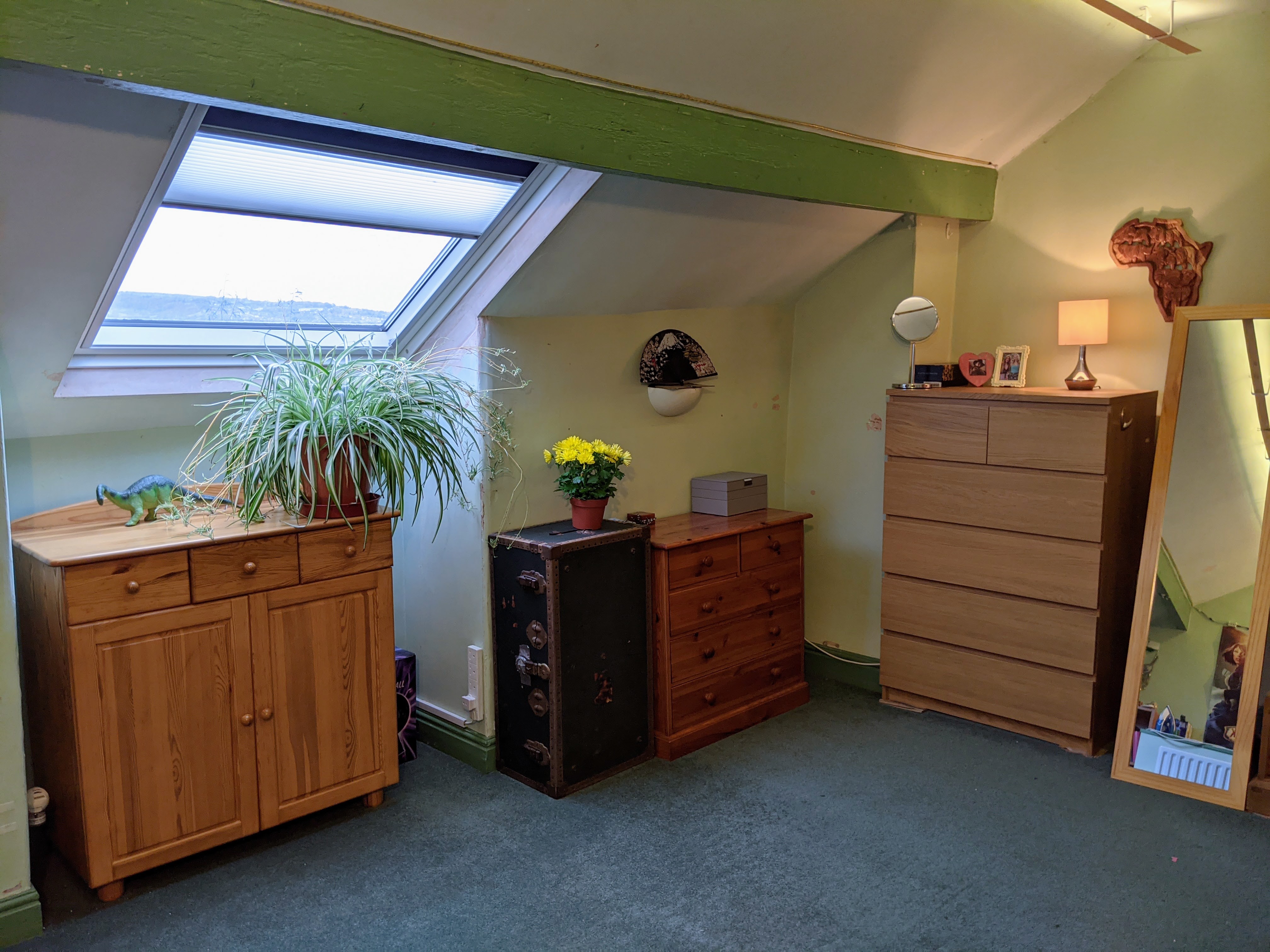 Attic Bedroom Three (4.90m x 4.98m) Through the fire door and staircase from first floor landing. Rear facing PVC framed Velux style window installed in 2018. Views to open skies towards Peak District. Radiator and access to under-eaves.