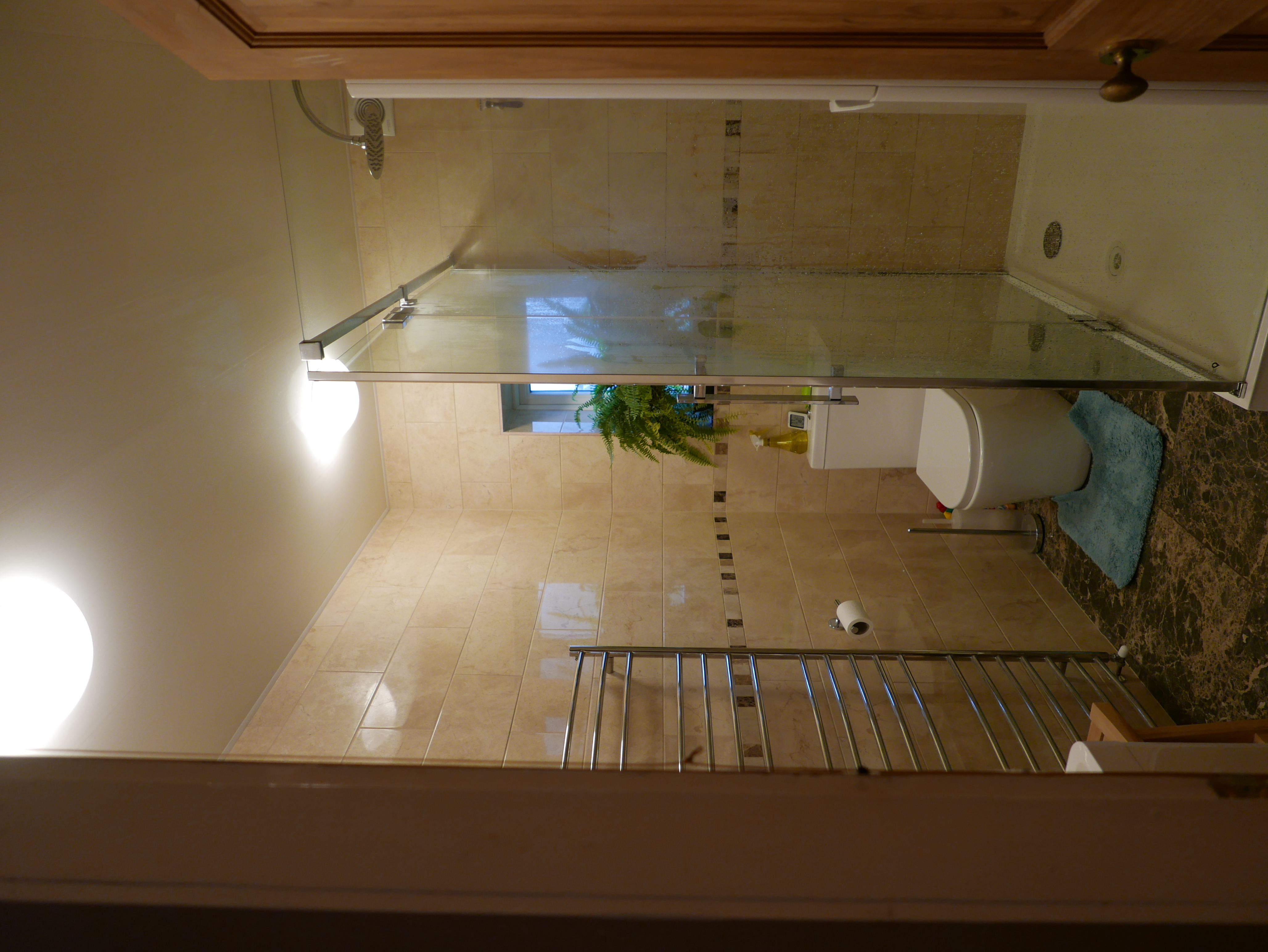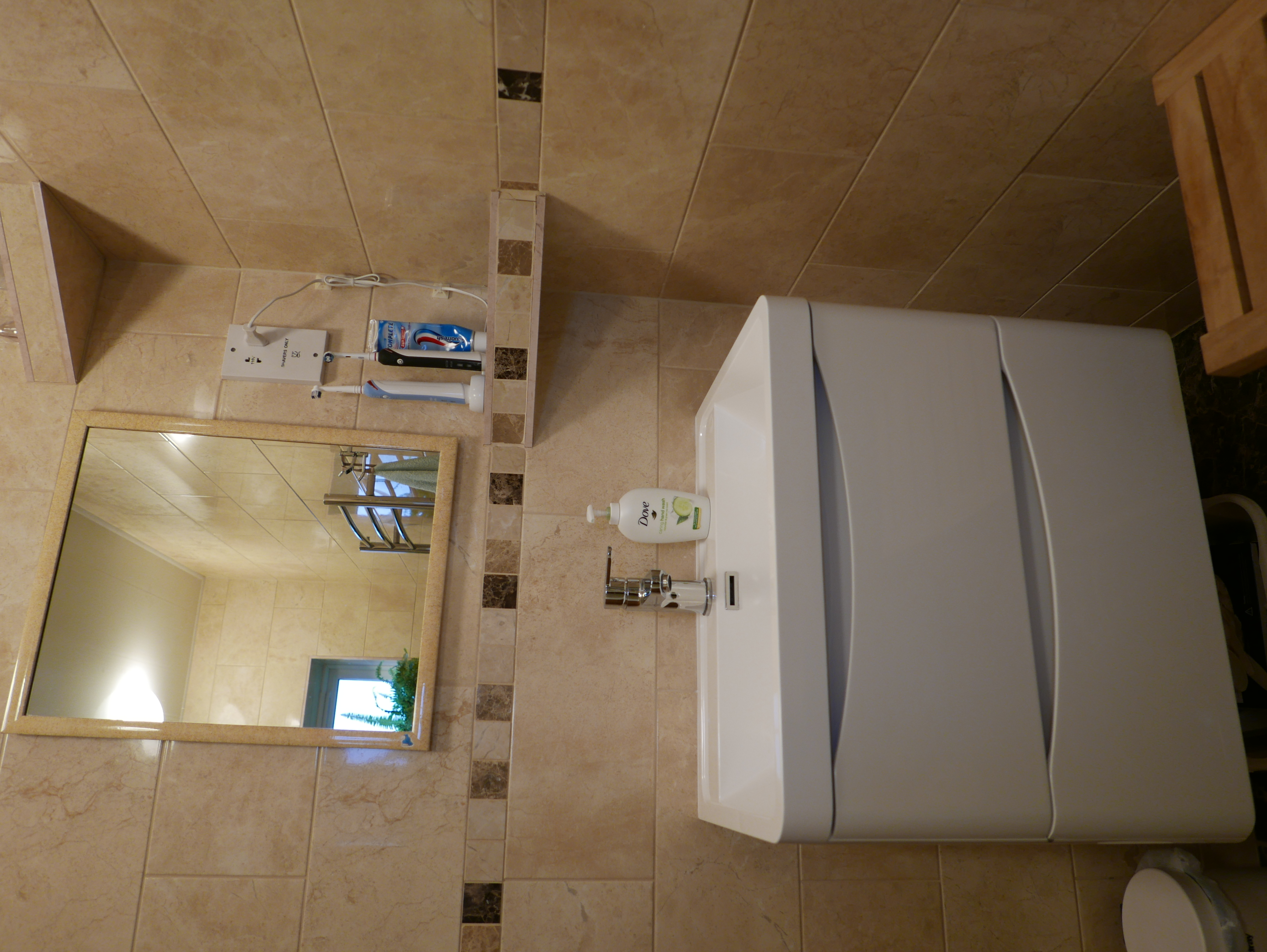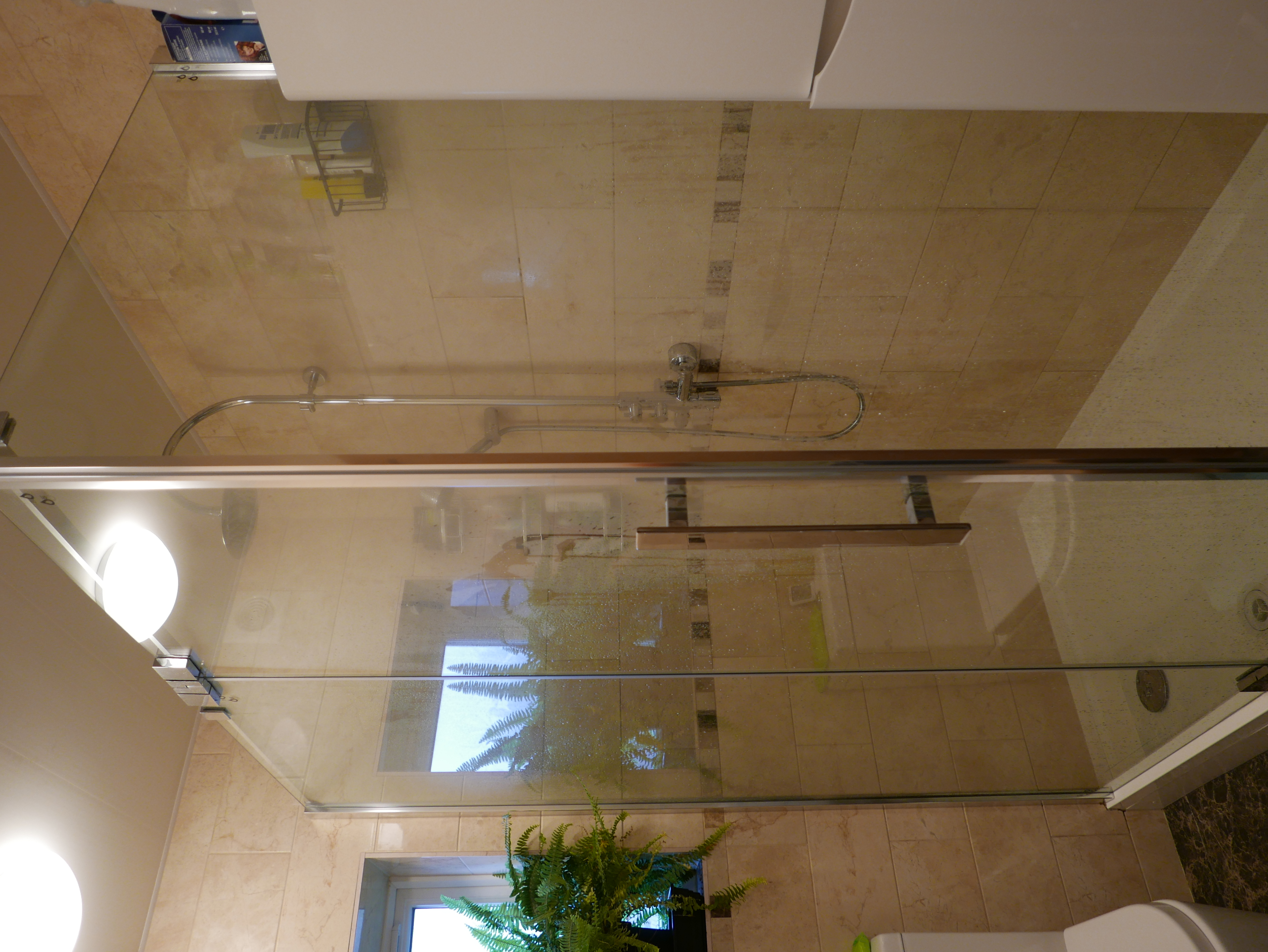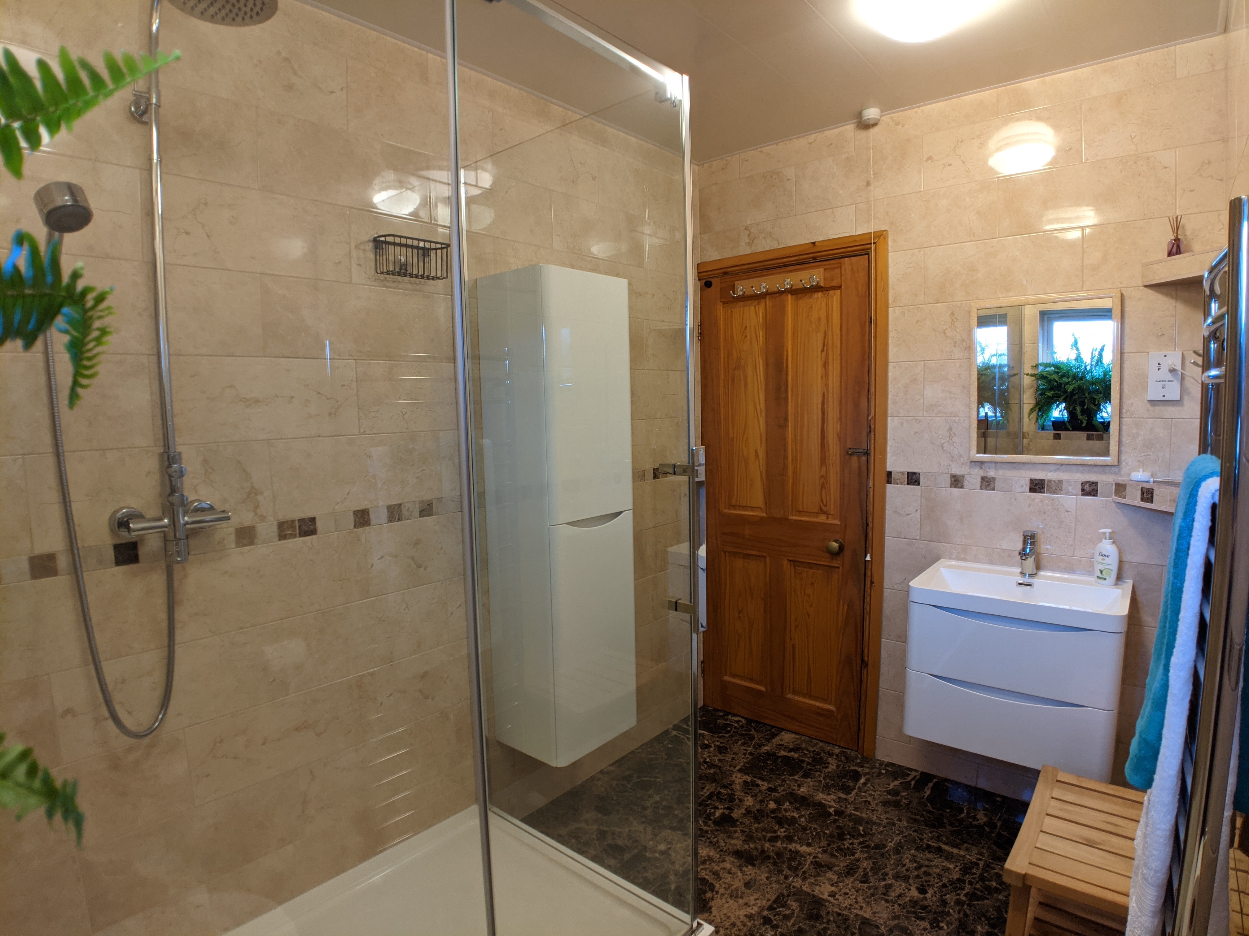 The bathroom has been stripped to the brickwork and completely rebuilt to be fully waterproof. The shower cabin is a very generous 150cm x 90cm.
