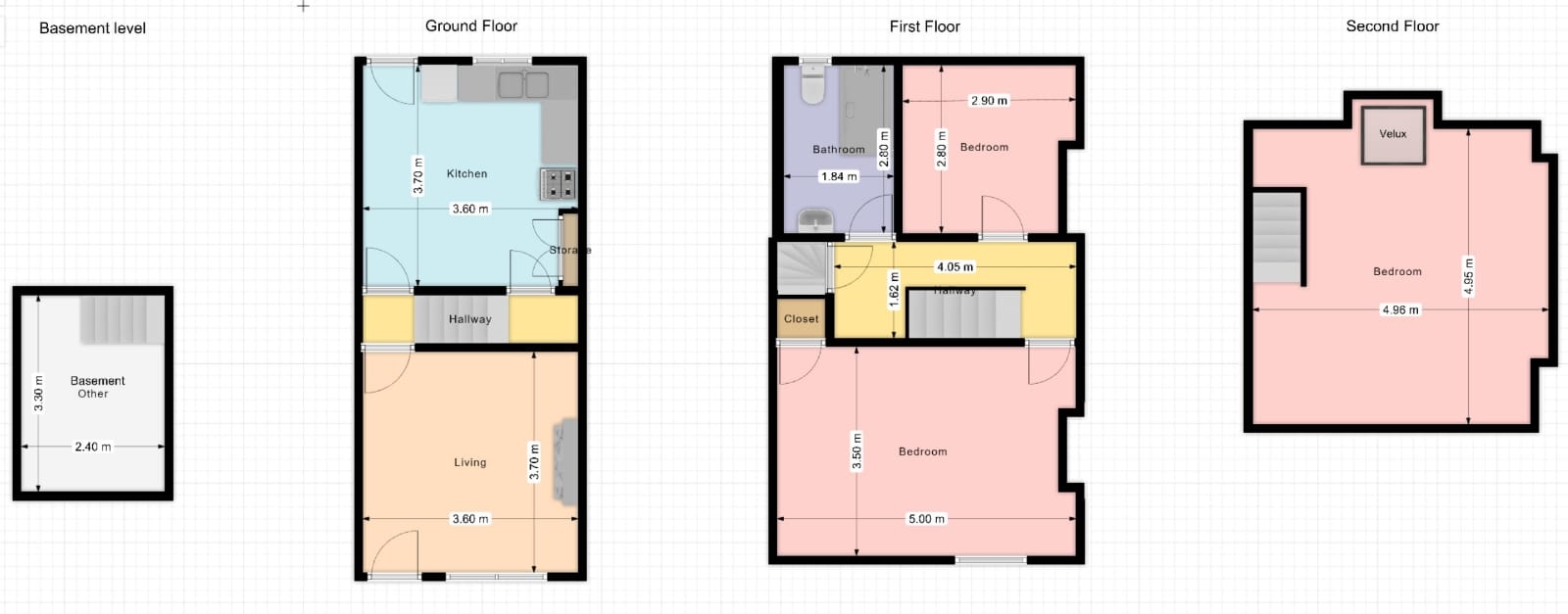 What sets the house apart from the others in the terrace is the extra space on the upper floors over the passageway. It extends the master bedroom and attic by approximately 1.5 m. This gives a great feeling of spaciousness. The living areas are about 99 sq m.